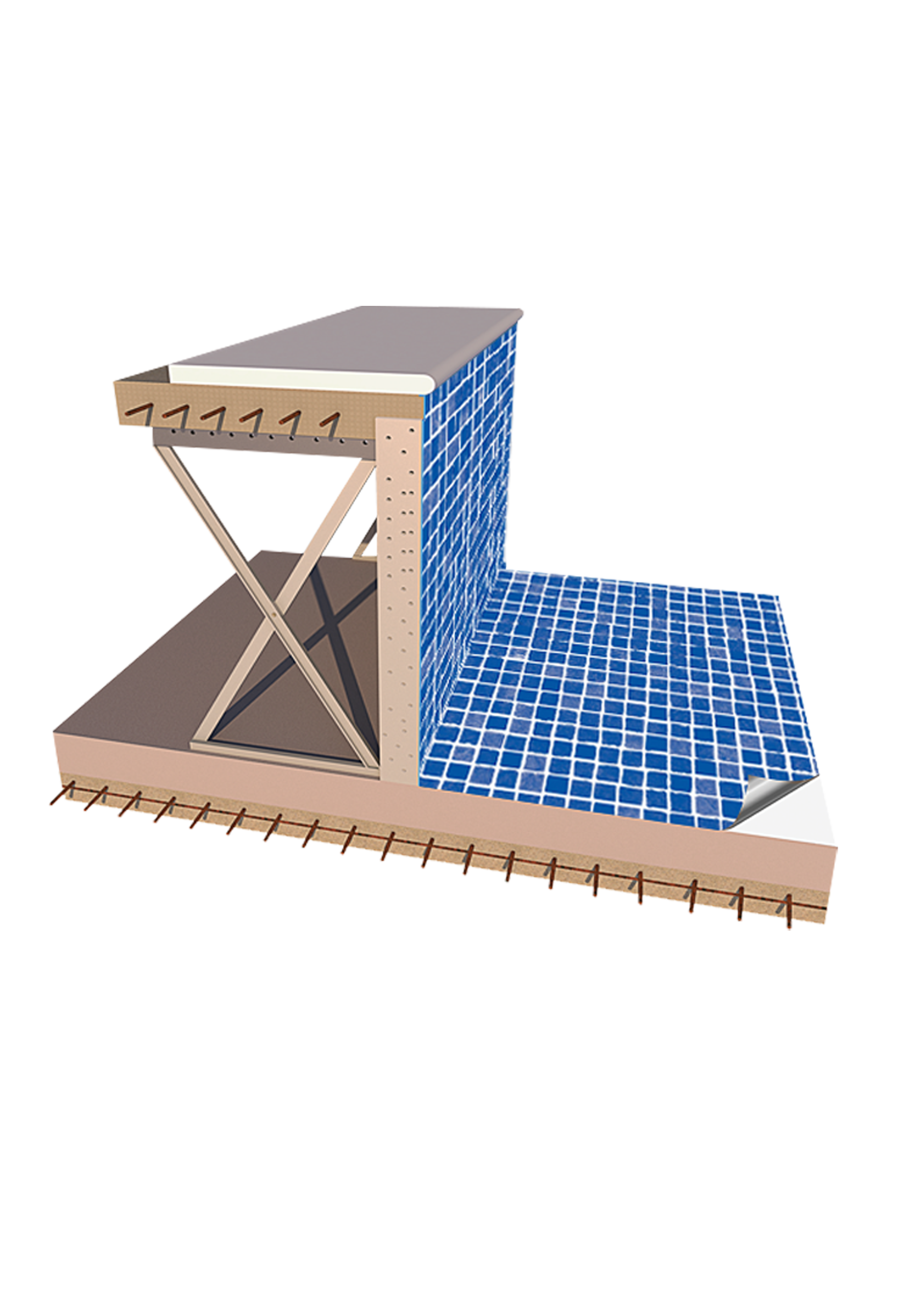 Çelik çubuklar, Çapraz ayakları ve havuz duvarını zemine sabitler.